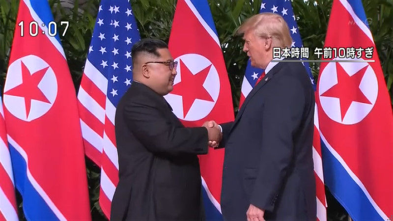 2018年6月12日、シンガポールで米ドナルドトランプ大統領府と北朝鮮金正恩朝鮮労働党委員長にとの、史上初の米朝首脳会談が行われた。